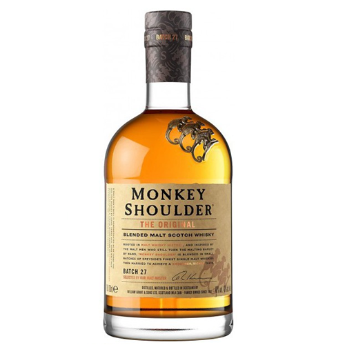 Monkey Shoulder es un whisky de malta diseñado para ser mezclado en coctelería. Fruto de la suma de 3 maltas de Speyside: (Glenfiddich, The Balvenie y Kininvie). En pequeños lotes, buscando un sabor suave que guste a un público amplio, cosmopolita, que se inicia en este apasionante mundo de los maltas.